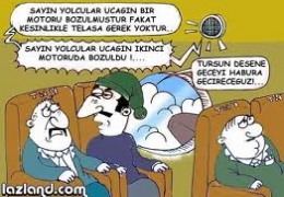İki Karadenizli uçağa binmiş. Uçak havalandıktan sonra uçağın motorlarından biri bozulmuş. Pilot anons etmiş: – “Uçağımızın bir motoru bozulmuştur. Telaşa gerek yoktur”. Aradan çok geçmeden ikinci motor da bozulmuş. Pilot anons etmiş: – “Uçağın ikinci motoru da bozuldu….”. Temel Dursun’a dönmüş: – “Tursun desene geceyi burda geçireceğiz.” YUNUS BALIĞI
